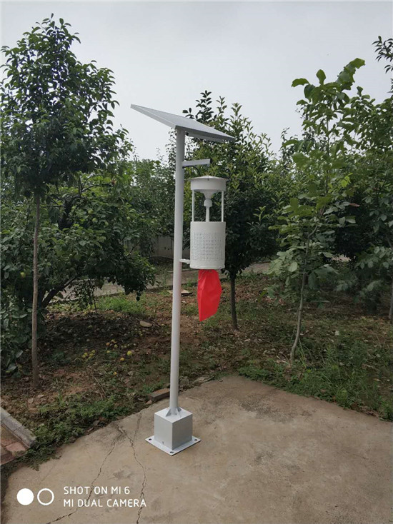 太阳能杀虫灯是利用害虫的较强趋光、波、色、味特性,将光波设在特定范围内,近距离用光,远距离用波加以色和味诱杀成虫,灯外配以电压网触杀,使害虫落入灯的袋子中,以达到杀灭成虫,控制为害的目的。另一方面它选用了能避开诱集天敌的光源、波长和波段,从而又达到了?;ぬ斓械男ЧC恐坏瓶煽孛婊?0亩,辐射果园面积约5000亩,每灯每日可诱捕害虫900余只,降低害虫落卵量70%左右,用药次数减少6次,药剂防治减少65%左右。