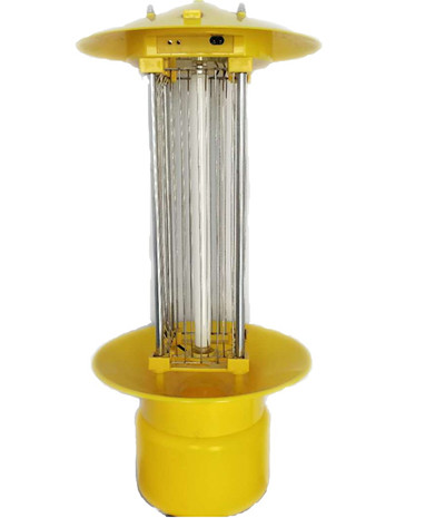 杀虫灯的原理:是利用害虫趋光性进行诱杀的一种物理防治方法。利用害虫的趋光、趋波、趋色、趋性信息的特性,将光的波长、波段、波的频率设定在特定范围内,近距离用光、远距离用波,加以诱到的害虫本身产生的性信息引诱成虫扑灯,灯外配以高压电网触杀,使害虫落入灯下的接虫桶内,达到杀灭害虫的目的。