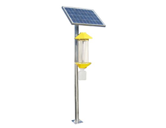 1. 频率太阳能杀虫灯挂在农田的坚固物体上。 作物生长初期悬挂高度为1.5m,高作物作物后期略高于作物。 这些灯相距100-150米,并以棋盘图案排列。 每盏灯可以控制60-70英亩的农田。