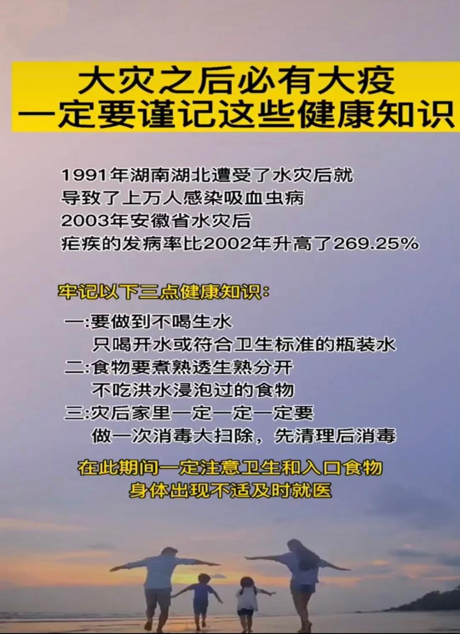 天意新能源温馨提醒大家:目前洪水已基本停止,有些地区水位还没完全撤退,出门还是要必备防护措施,为了防止灾后可能产生的相关疫情,请大家高度重视。